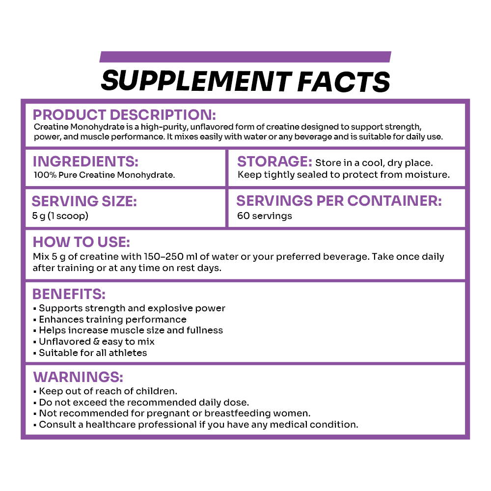 - Creatine Monohydrate (100% Pure & Unflavored):